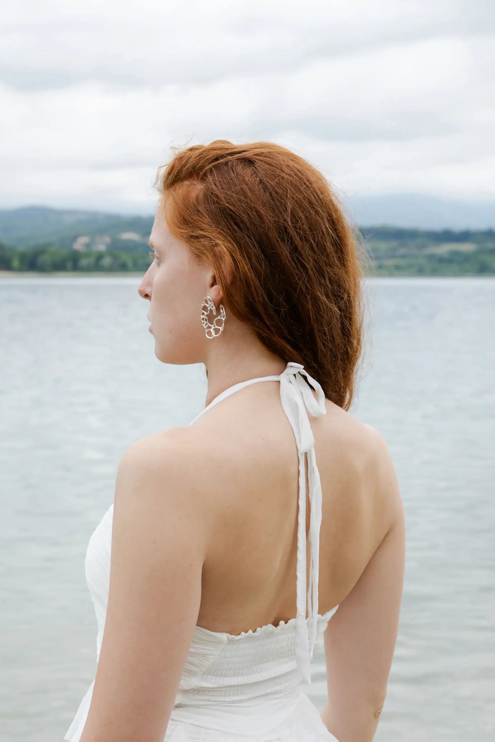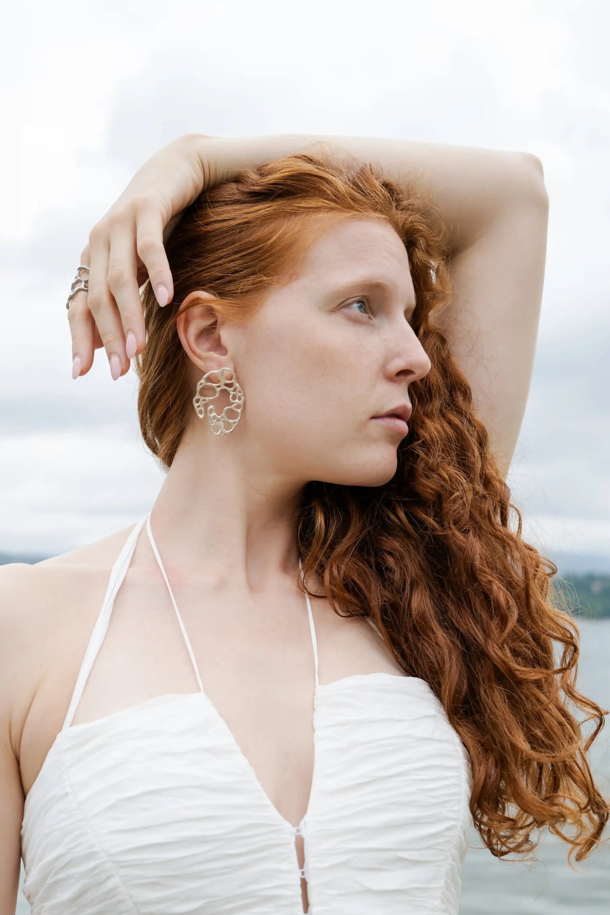 Gli orecchini BUBBLE LOOP, con movimenti morbidi e decisi, incarnano la libertà di esprimere sé stessi senza chiedere il permesso. Come la schiuma del mare che avvolge la riva. Le loro forme circolari, fluide e irregolari celebrano la bellezza dell’imperfezione e il coraggio di prendere il proprio spazio con autenticità.
